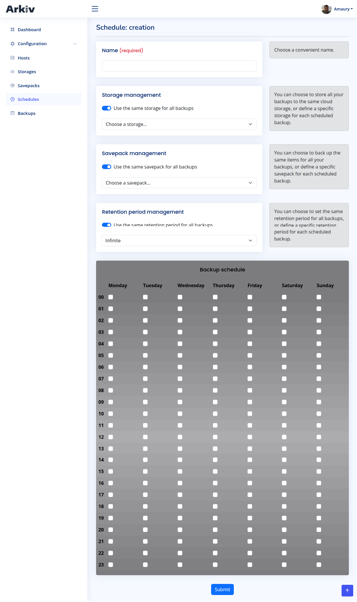 Unlike many other tools, Arkiv focuses on clearly defining what needs to be backed up — including databases — and when it should be done. We provide a clean, intuitive interface for managing backup policies with precision and confidence.